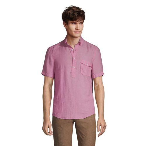Slim Solid Linen Popover Shirt Express